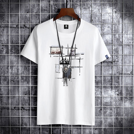 Men's Patterned Casual Crew Neck Short-Sleeve T-Shirt for Spring