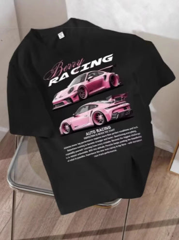 Round Neck T-Shirt with Car and Beer Pattern Custom Order