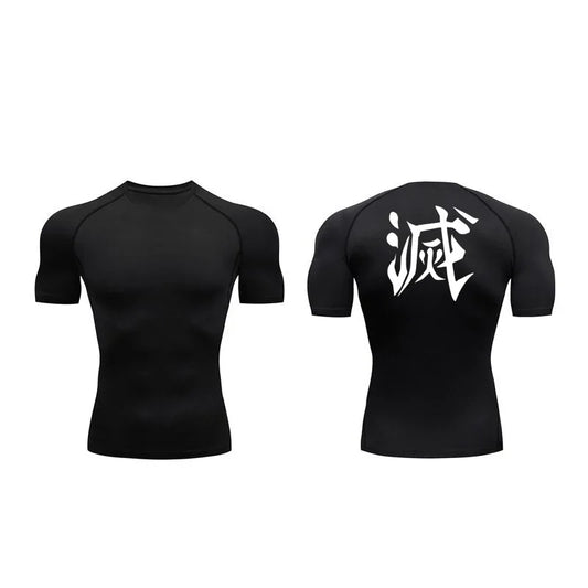 Demon Slayer Print Compression Shirts for Men Gym Workout Fitness Undershirts Short Sleeve Quick Dry Athletic Tees T-Shirt Tops