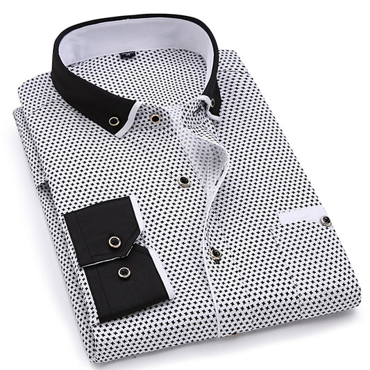 Camisa informal de manga larga estampada, ajustada, para hombre, para negocios sociales, ropa de marca