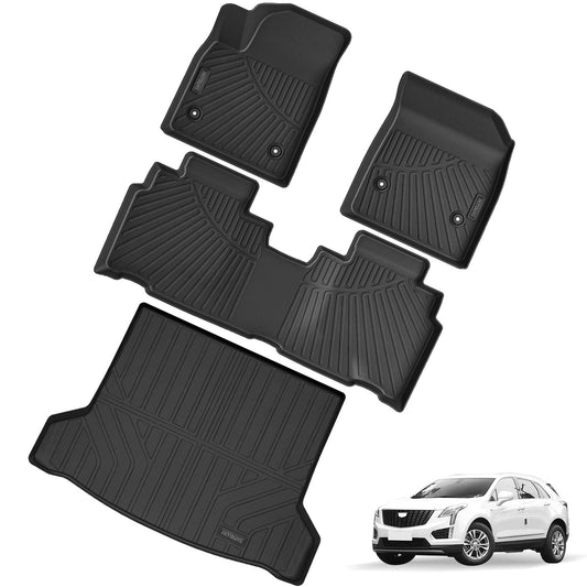 Floor Mats & Trunk Mat Compatible For Cadillac Lyriq 2023-2024,All Weather Anti-Slip TPE Rubber Waterproof Non-Slip Design Protect 2 Rows Set Car Floor Liners With Cargo Liners Accessories