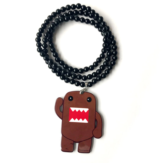 Colgante de moda con insignia DOMO KUN marrón para coche, adorno para espejo retrovisor interior JDM, cuentas Hellaflush, collar de hip hop