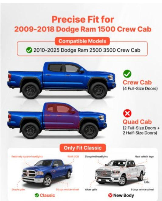 Running Boards, 6 Inches Side Steps Compatible with 2009-2018 Dodge Ram 1500 Crew Cab, 2010-2025 Dodge Ram 2500 3500 Crew Cab(Not Fit 2019-2025 Ram 1500 New Body), Wide Non-Slip Black Carbon Steel Nerf Bars, 550 lbs Load Capacity