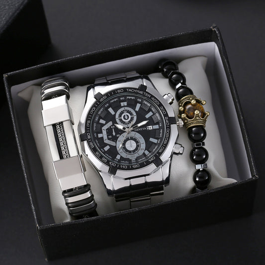 Reloj de cuarzo resistente al agua de acero de tungsteno con doble calendario