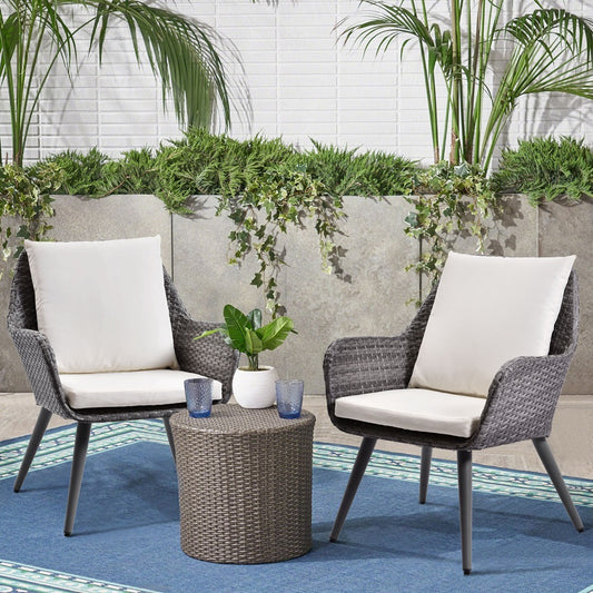 Outdoor Wicker Dining Chair PE Rattan Accent Chair with Beige Cushion Patio Garden Furniture