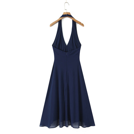 Spring New Women's Design Sense Unique Versatile French Fitted Slim Casual Halter Dress